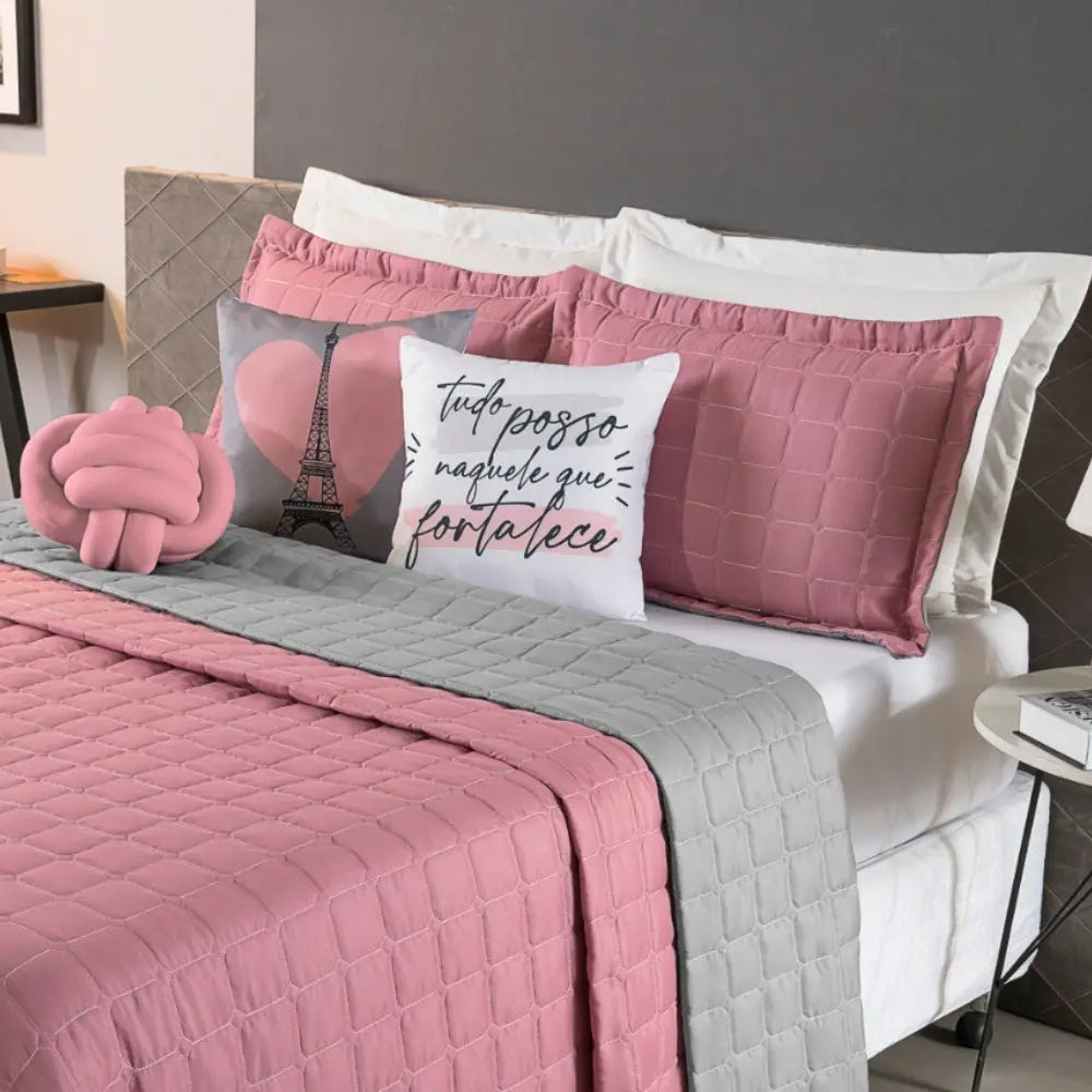 Cobre Leito clássico, tons neutros, dupla face e acabamento Matelassê (com costura para melhor qualidade e durabilidade da peça), compõem o Kit Dupla Face Paris, que tem tudo para se tornar o seu favorito.