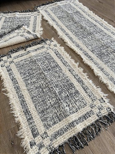Jogo De Tapetes e Passadeira Boho Grid 3 peças