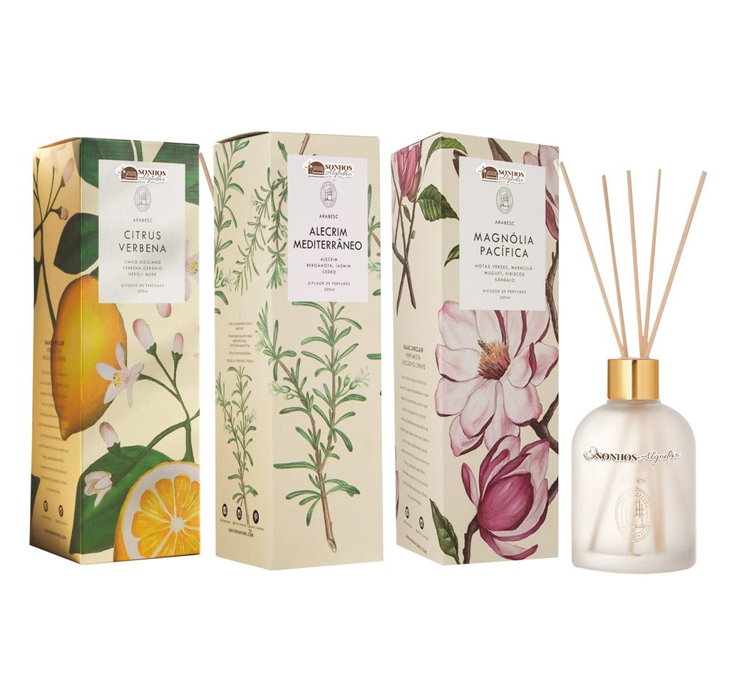 • 3 difusores com 200ml cada (1 de cada fragrância)